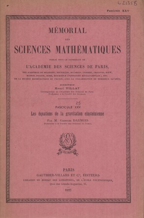 12. . _ Théorie des champs gravifiques (Mémorial des Sciences mathématiques, fasc. XIV; Gauthier-Villars, 1925). | Numdam | JFM | EuDML