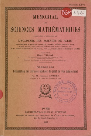 Gambier, Bertrand. Déformation des surfaces étudiée du point de vue infinitésimal. Mémorial des sciences mathématiques, no. 26 (1927), 66 p. https://www.numdam.org/item/MSM_1927__26__1_0/