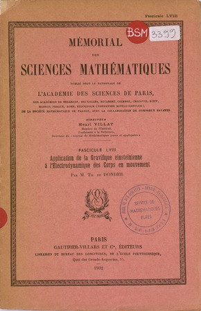 De Donder, Th. Application de la gravifique einsteinienne à l'électrodynamique des corps en mouvement. Mémorial des sciences mathématiques, no. 58 (1932), 66 p. https://www.numdam.org/item/MSM_1932__58__1_0/