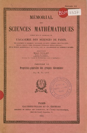 Got, Th. Propriétés générales des groupes discontinus. Mémorial des sciences mathématiques, no. 60 (1933), 70 p. https://www.numdam.org/item/MSM_1933__60__1_0/