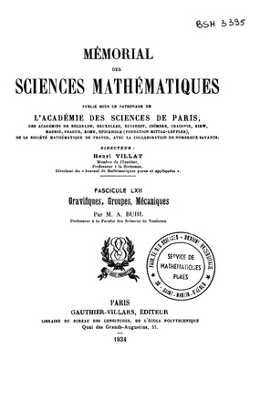 Buhl, A. Gravifiques, groupes, mécaniques. Mémorial des sciences mathématiques, no. 62 (1934), 70 p. https://www.numdam.org/item/MSM_1934__62__1_0/