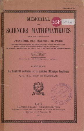 Costa De Beauregard, Olivier. La relativité restreinte et la première mécanique broglienne. Mémorial des sciences mathématiques, no. 103 (1944), 76 p. https://www.numdam.org/item/MSM_1944__103__1_0/