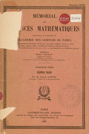 Samuel, Pierre. Algèbre locale. Mémorial des sciences mathématiques, no. 123 (1953), 80 p. https://www.numdam.org/item/MSM_1953__123__1_0/