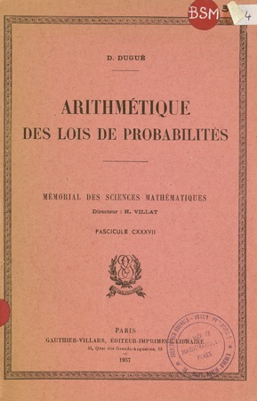 Dugué, D. Arithmétique des lois de probabilités. Mémorial des sciences mathématiques, no. 137 (1957), 56 p. https://www.numdam.org/item/MSM_1957__137__1_0/