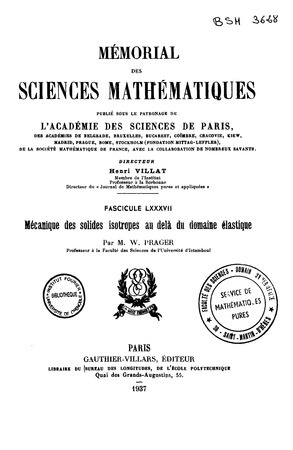 Prager, W. Mécanique des solides isotropes au delà du domaine élastique. Mémorial des sciences mathématiques, no. 87 (1937), 72 p. https://www.numdam.org/item/MSM_1937__87__1_0/