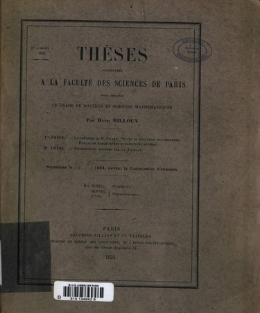 Milloux, Henri. Le théorème de M. Picard. Suites de fonctions holomorphes. Fonctions méromorphes et fonctions entières. Thèses de l'entre-deux-guerres, no. 50 (1924), 66 p. https://www.numdam.org/item/THESE_1924__50__1_0/