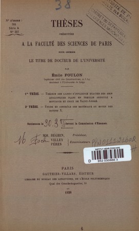 Foulon, Émile. Théorie des lignes d'influence exactes des arcs quelconques plans en treillis articulé à montants et croix de Saint-André. Thèses de l'entre-deux-guerres, no. 212 (1938), 172 p. https://www.numdam.org/item/THESE_1938__212__1_0/