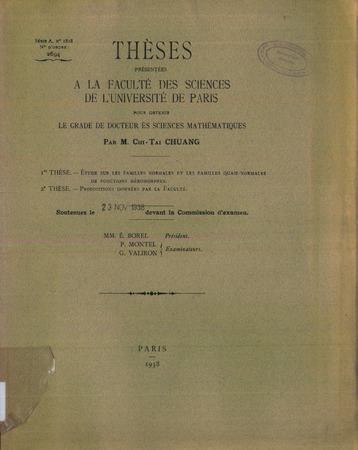 Chuang, Chi-Tai. Étude sur les familles normales et les familles quasi-normales de fonctions méromorphes. Thèses de l'entre-deux-guerres, no. 215 (1938), 88 p. https://www.numdam.org/item/THESE_1938__215__1_0/