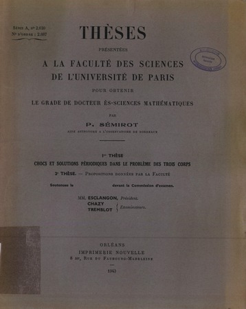 Sémirot, P. Chocs et solutions périodiques dans le problème des trois corps. Thèses de l'entre-deux-guerres, no. 253 (1943), 112 p. https://www.numdam.org/item/THESE_1943__253__1_0/