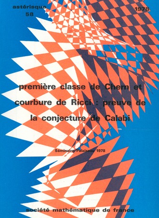 Helffer, B.; Gallot, Sylvain; Polombo, Albert; Bérard Bergery, Lionel; Averous, Geneviève; Deschamps, Annie; Calabi, Eugenio; Bourguignon, J.-P.; Yau, Shing Tung; Ezin, J. P. Première classe de Chern et courbure de Ricci : preuve de la conjecture de Calabi. Astérisque, no. 58 (1978), Bourguignon, J.-P. (red.), 176 p. https://www.numdam.org/item/AST_1978__58__1_0/
