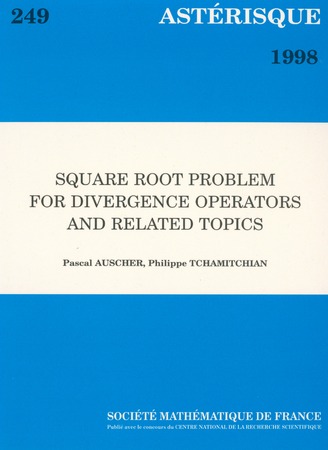 Auscher, Pascal; Tchamitchian, Philippe. Square root problem for divergence operators and related topics. Astérisque, no. 249 (1998), 180 p. https://www.numdam.org/item/AST_1998__249__R1_0/