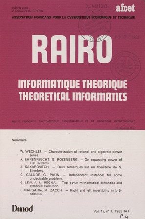 RAIRO - Theoretical Informatics and Applications - Informatique Théorique et Applications