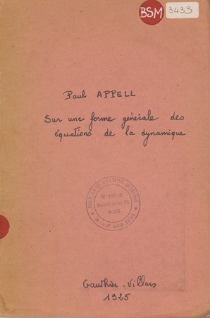 Appell, Paul. Sur une forme générale des équations de la dynamique. Mémorial des sciences mathématiques, no. 1 (1925), 58 p. https://www.numdam.org/item/MSM_1925__1__1_0/