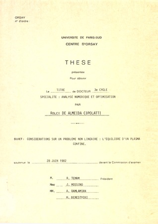 |16| , Détermination numérique de la configuration d'équilibre du plasma d'un tokamak, Thèse de 3e Cycle, Université Paris-Sud 1977.