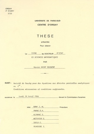 [19] : Non-unicité du problème de Cauchy pour des opérateurs non-elliptiques à symboles complexes, Thèse de 3ème cycle, Université de Paris XI-Orsay, 1983
