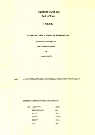 Comets, Francis. A propos des systèmes de particules en interaction sur un réseau. Thèses d'Orsay, no. 202 (1987), 244 p. https://www.numdam.org/item/BJHTUP11_1987__0202__A1_0/