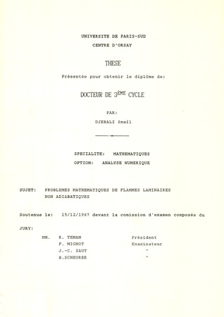 [A.8] : Aspects mathématiques d'un modèle de flamme simple. Thèse de 3ème cycle (1982) Paris VI.