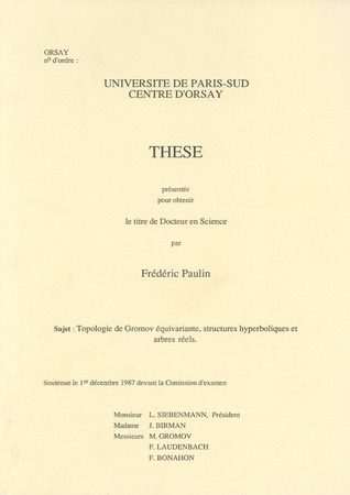 Paulin, Frédéric. Topologie de Gromov équivariante, structures hyperboliques et arbres réels. Thèses d'Orsay, no. 214 (1987), 142 p. https://www.numdam.org/item/BJHTUP11_1987__0214__P0_0/