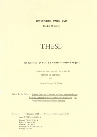 Sikorav, Jean-Claude. Points fixes de difféomorphismes symplectiques, intersection de sous-variétés lagrangiennes, et singularités de un-formes fermées. Thèses d'Orsay, no. 220 (1987), 106 p. https://www.numdam.org/item/BJHTUP11_1987__0220__P0_0/