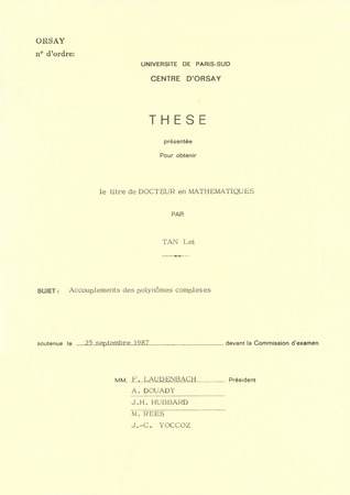 Tan, Lei. Accouplements des polynômes complexes. Thèses d'Orsay, no. 222 (1987), 102 p. https://www.numdam.org/item/BJHTUP11_1987__0222__P0_0/