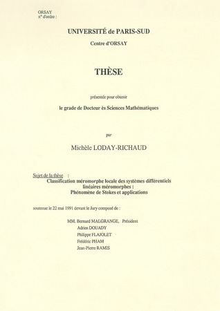 [Hi87] , Solutions formelles de systèmes différentiels linéaires au voisinage d'un point singulier, Thèse, U.S.T.M. de Grenoble (1987).