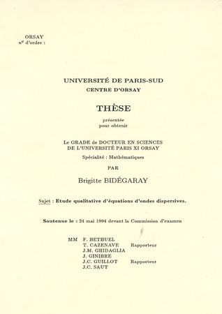[11] Simulation numérique des systèmes de Davey-Stewartson. Sur un système d'interaction ondes courtes-ondes longues. Thèse, Paris Sud, 9.12.1993 (article en préparation)