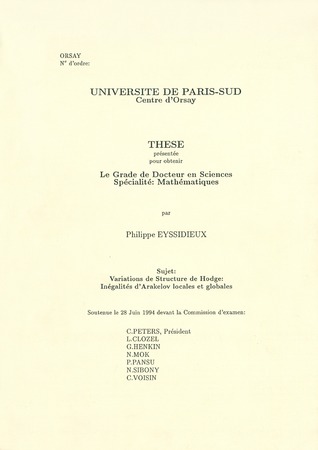 Eyssidieux, Philippe. Variations de structure de Hodge : inégalités d'Arakelov locales et globales. Thèses d'Orsay, no. 370 (1994), 106 p. https://www.numdam.org/item/BJHTUP11_1994__0370__P0_0/