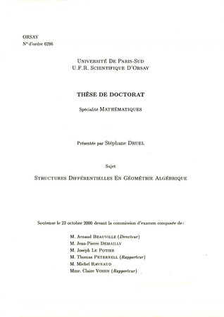 Druel, Stéphane. Structures différentielles en géométrie algébrique. Thèses d'Orsay, no. 573 (2000), 86 p. https://www.numdam.org/item/BJHTUP11_2000__0573__A1_0/