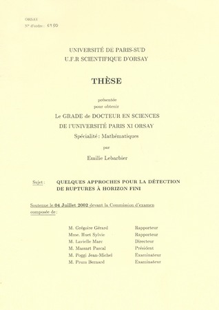 [43] Quelques approches pour la détection de ruptures à horizon fini. PhD thesis, Université Paris XI, 2002.