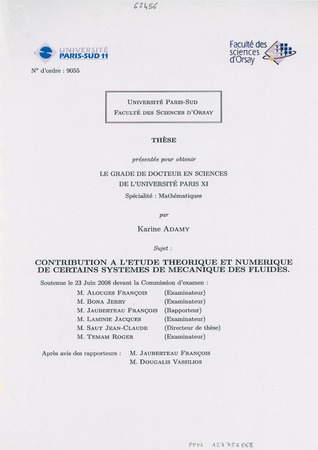 Adamy, Karine. Contribution à l'étude théorique et numérique de certains systèmes de mécanique des fluides. Thèses d'Orsay, no. 745 (2008), 118 p. https://www.numdam.org/item/BJHTUP11_2008__0745__A1_0/