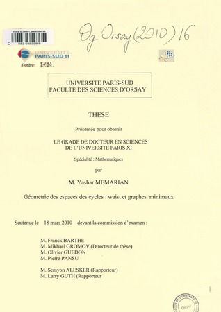 Memarian, Yashar. Géométrie des espaces des cycles : waist et graphes minimaux. Thèses d'Orsay, no. 809 (2010), 100 p. https://www.numdam.org/item/BJHTUP11_2010__0809__P0_0/