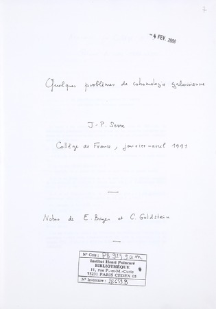 Serre, Jean-Pierre. Quelques problèmes de cohomologie galoisienne. Cours de Jean-Pierre Serre, no. 12 (1991), Bayer, E.; Goldstein, C. (red.), 234 p. https://www.numdam.org/item/CJPS_1991__12_/
