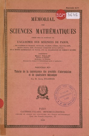 Feldheim, Ervin. Théorie de la convergence des procédés d'interpolation et de quadrature mécanique. Mémorial des sciences mathématiques, no. 95 (1939), 96 p. https://www.numdam.org/item/MSM_1939__95__1_0/