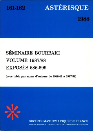 booktitle = {S\'eminaire Bourbaki : volume 1987/88, expos\'es 686-699},