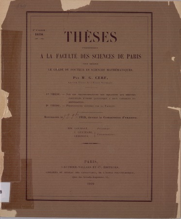 Cerf, G. Sur les transformations des équations aux dérivées partielles d'ordre quelconque à deux variables indépendantes. Thèses de l'entre-deux-guerres, no. 17 (1919), 112 p. https://www.numdam.org/item/THESE_1919__17__1_0/