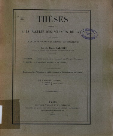 Paloque, Émile. Théorie analytique du mouvement des planètes troyennes. Thèses de l'entre-deux-guerres, no. 60 (1925), 132 p. https://www.numdam.org/item/THESE_1925__60__1_0/