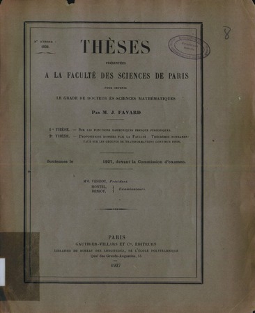 Favard, J. Sur les fonctions harmoniques presque périodiques. Thèses de l'entre-deux-guerres, no. 77 (1927), 120 p. https://www.numdam.org/item/THESE_1927__77__1_0/