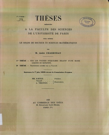 Charrueau, André. Sur les figures d'équilibre relatif d'une masse liquide en rotation. Thèses de l'entre-deux-guerres, no. 89 (1928), 112 p. https://www.numdam.org/item/THESE_1928__89__1_0/