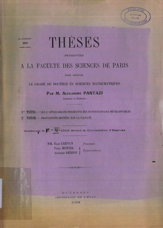 Pantazi, Alexandre. Sur l'applicabilité projective des hypersurfaces développables. Thèses de l'entre-deux-guerres, no. 92 (1928), 90 p. https://www.numdam.org/item/THESE_1928__92__1_0/