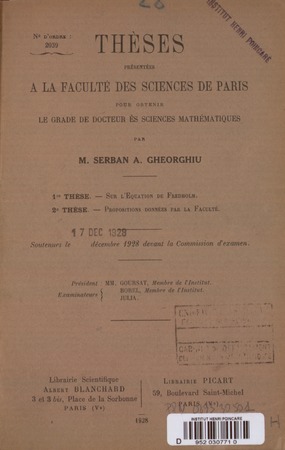 Gheorghiu, Serban A. Sur l'équation de Fredholm. Thèses de l'entre-deux-guerres, no. 94 (1928), 80 p. https://www.numdam.org/item/THESE_1928__94__1_0/