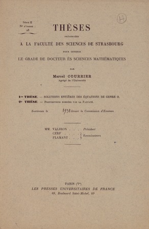 Courrier, Marcel. Solutions entières des équations du genre O. Thèses de l'entre-deux-guerres, no. 119 (1931), 60 p. https://www.numdam.org/item/THESE_1931__119__1_0/