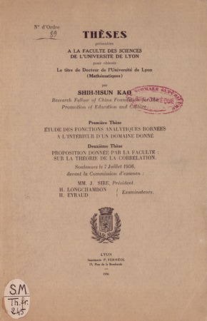 Shih-Hsun Kao. Étude des fonctions analytiques bornées à l'intérieur d'un domaine donné. Thèses de l'entre-deux-guerres, no. 182 (1936), 42 p. https://www.numdam.org/item/THESE_1936__182__1_0/