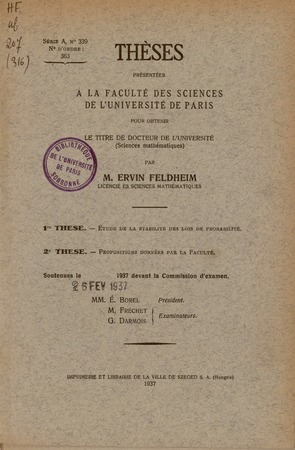 Feldheim, Ervin. Étude de la stabilité des lois de probabilité. Thèses de l'entre-deux-guerres, no. 187 (1937), 66 p. https://www.numdam.org/item/THESE_1937__187__1_0/