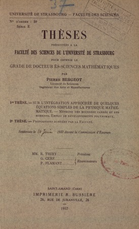 Bergeot, Pierre. Sur l'intégration approchée de quelques équations simples de la physique mathématique. Méthode des moindres carrés et des moments. Emploi de développements polynomaux. Thèses de l'entre-deux-guerres, no. 192 (1937), 132 p. https://www.numdam.org/item/THESE_1937__192__1_0/