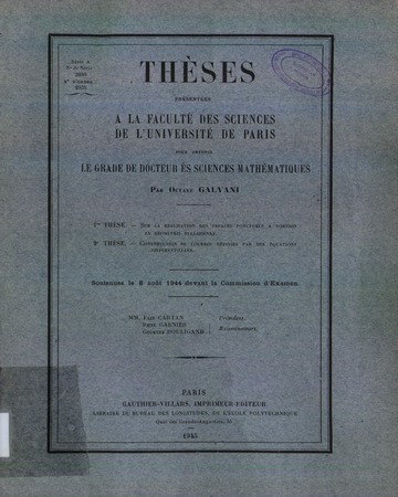 Galvani, Octave. Sur la réalisation des espaces ponctuels à torsion en géométrie euclidienne. Thèses de l'entre-deux-guerres, no. 265 (1944), 100 p. https://www.numdam.org/item/THESE_1944__265__1_0/