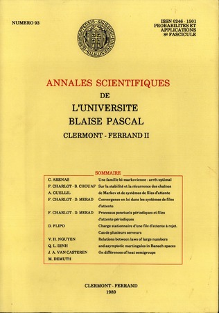 Annales scientifiques de l'Université de Clermont-Ferrand 2. Série Probabilités et applications